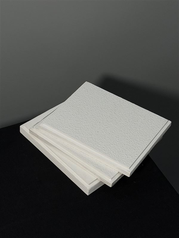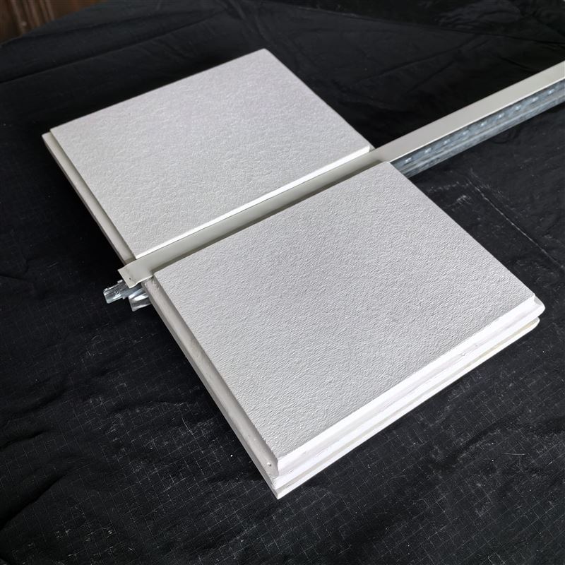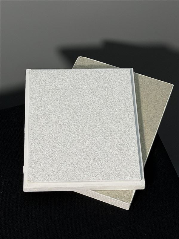 跌级岩棉吸音天花板采用高密度的玻纤板,表面复合装饰毡制成,背面复合玻纤素毡,四周做封边处理。此板四处呈阶梯状,安装后表面低于龙骨面。产品采用明架龙骨,可拆卸,适合公制或英制尺寸的龙骨。